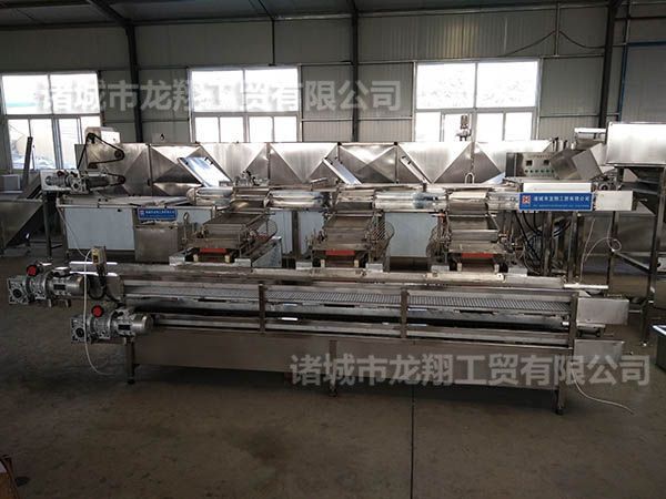 現(xiàn)我公司新研制開(kāi)發(fā)的蛋制品定心蒸煮鹵制線,改進(jìn)現(xiàn)在夾層鍋,殺菌鍋等設(shè)備的缺點(diǎn)。現(xiàn)蛋品的生產(chǎn)量達(dá)到5T/天/8小時(shí),有蛋品破損少、產(chǎn)量高、蛋品定心,方便剝皮機(jī)的去皮等優(yōu)點(diǎn)。適合于禽類雞蛋、鵪鶉蛋等蛋品。使用人工2一-3人。