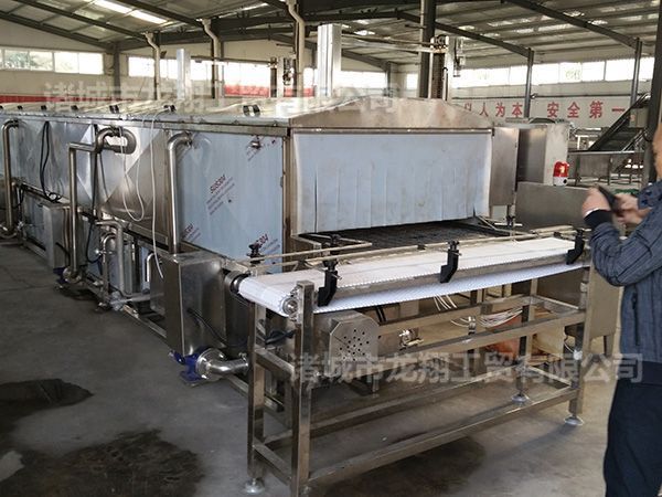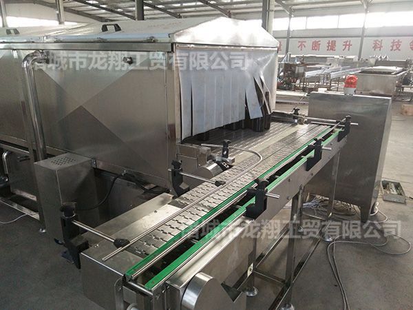 在食品、飲料、制藥等行業中,要求對一些包裝完畢的產品進行水浴滅菌。被包裝好的產品放在可調速的不銹鋼網帶上,在傳送帶的作用下按序進人滅的箱體內,經由“高溫水為介質”殺菌后,再由另一條傳送帶帶入冷卻箱體內均勻冷卻,從而達到產品殺菌要求,后面接著進入連續風干線可直接裝箱。該系列設備連續運轉,已滅菌的包裝產品被源源不斷送入下一-生產工序。